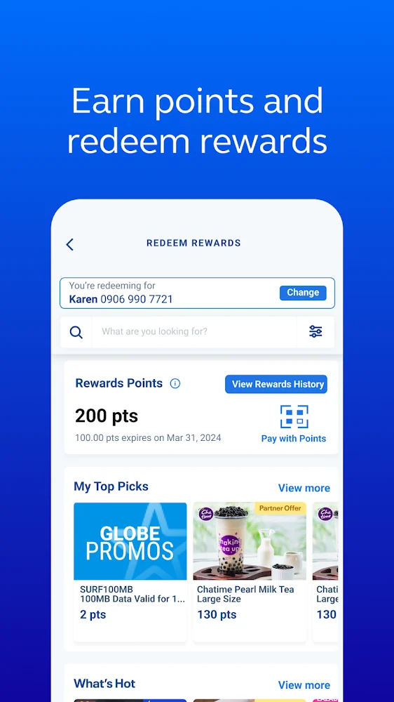 Rewards Management: Earn and redeem Globe Rewards points seamlessly for data, discounts, and lifestyle perks.